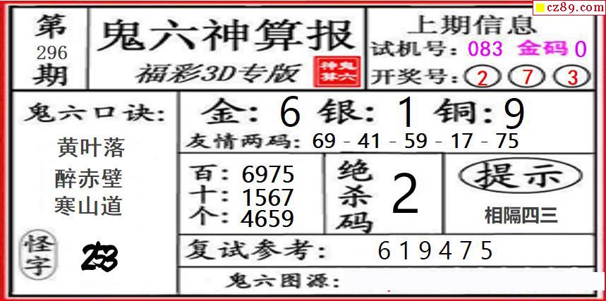 > 鬼六神算2025296期3d图谜