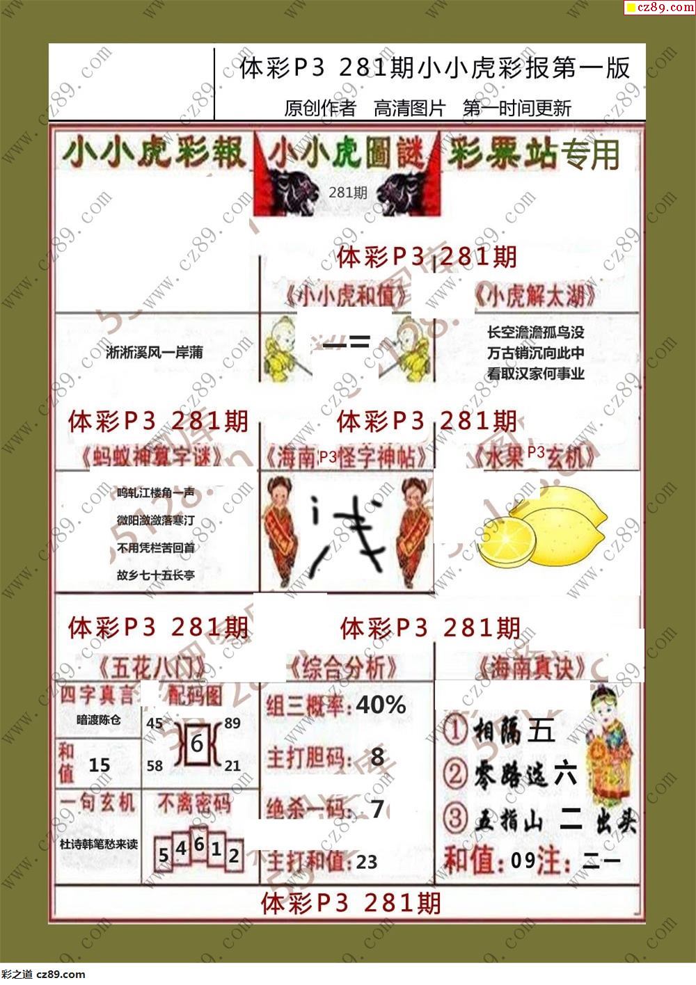 小小虎彩报281期体彩p3图谜