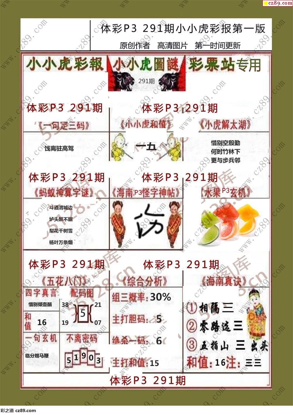 小小虎彩报291期体彩p3图谜