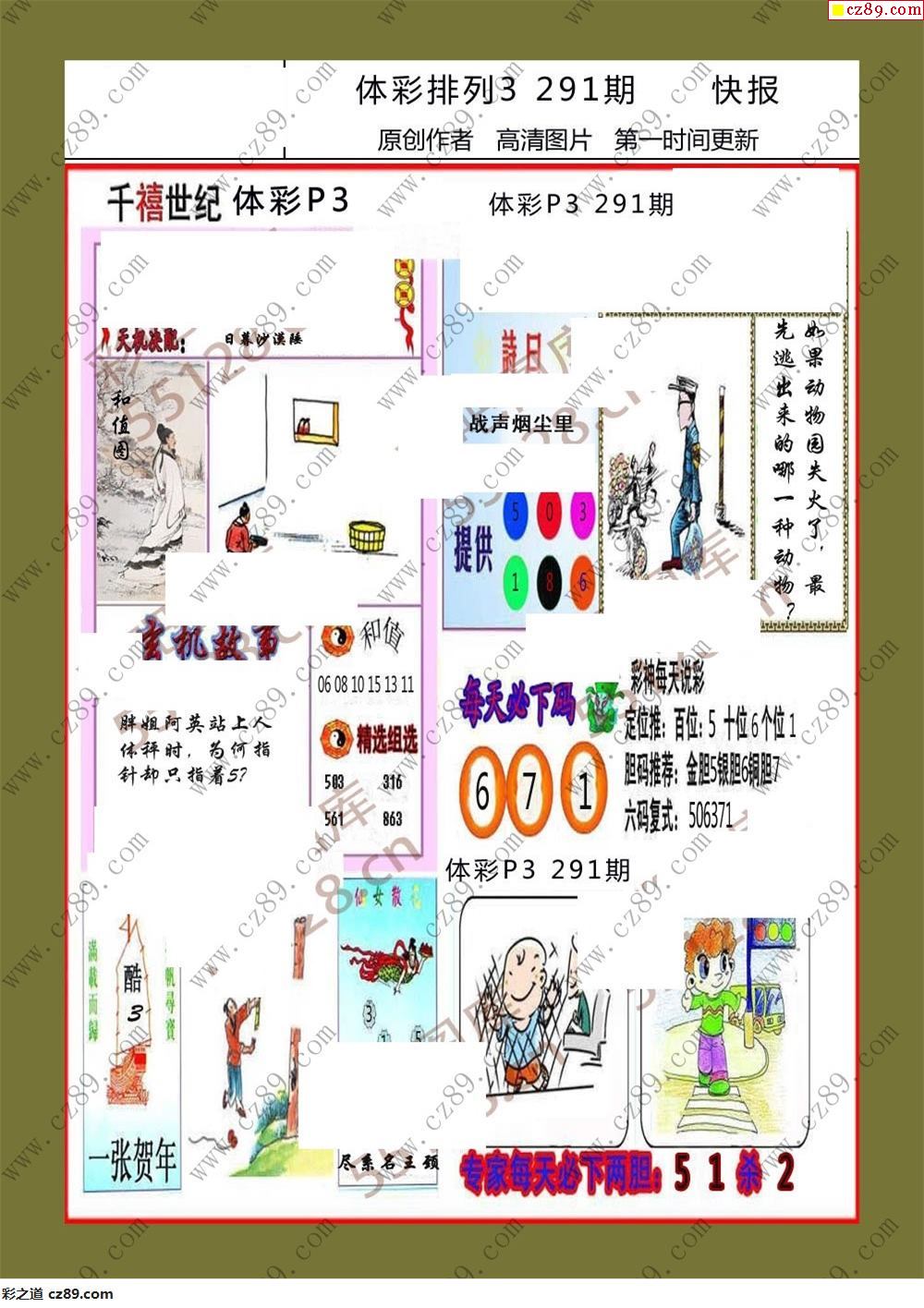 香岛快报291期体彩p3图谜