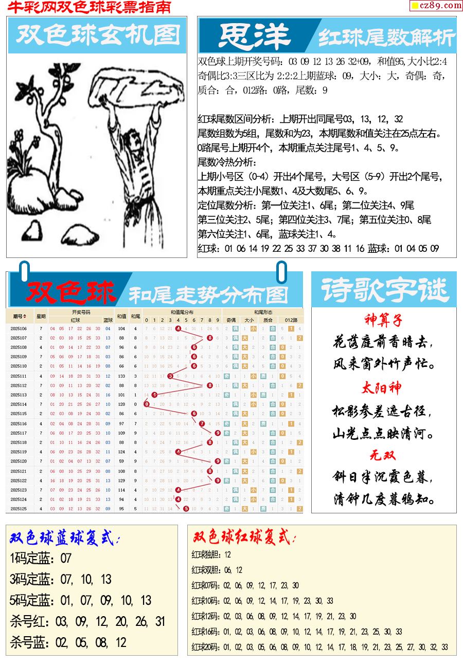 首页 > 双色球图谜 > 25年126期双色球彩票指南【牛彩版】